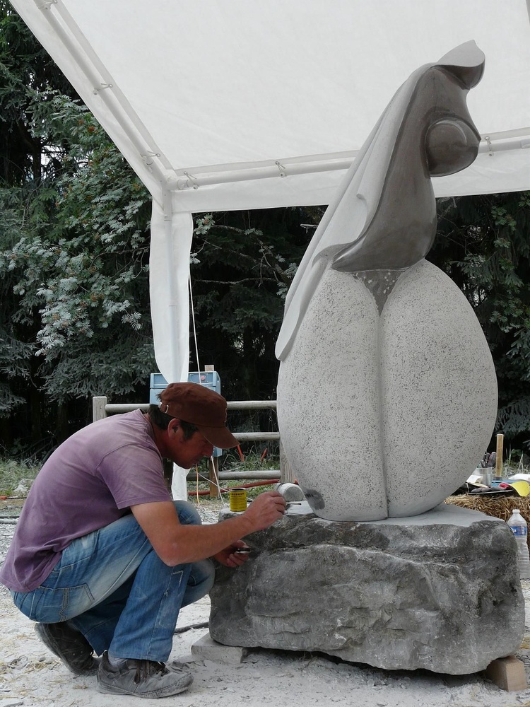 Le marbre le plus pur au monde, le marbre noir, n’a pas laissé le sculpteur Didier Poisson indifférent: de cette noble roche est née une série de sculptures fines en taille directe.Notre regard se pose alors sur des formes pleines, très souvent arrondies, qui font la part belle à un imaginaire nourri de sensualité et de maternité.